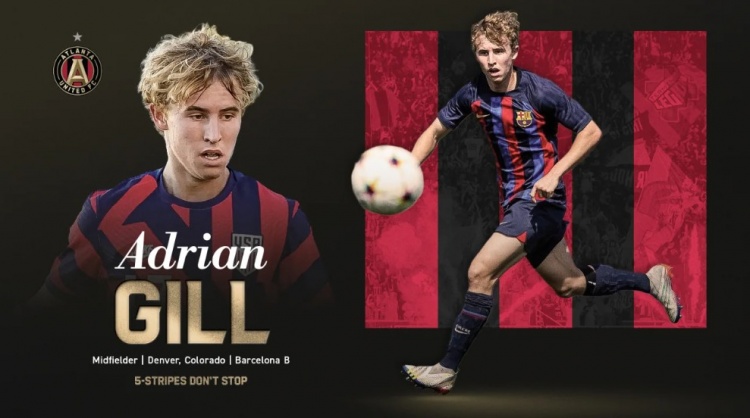 1月28日讯 亚特兰大联官方宣布签下巴萨20岁中场阿德里安·吉尔(Adrian Gill),双方签约至2027年6月,但俱乐部可延长合同至2029-30赛季。