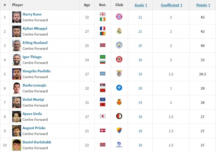 01月27日讯 姆巴佩在本轮西甲梅开二度,欧洲金靴排行榜上,他已经追平凯恩。